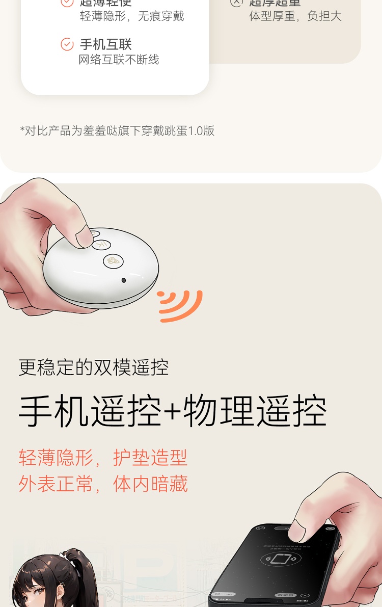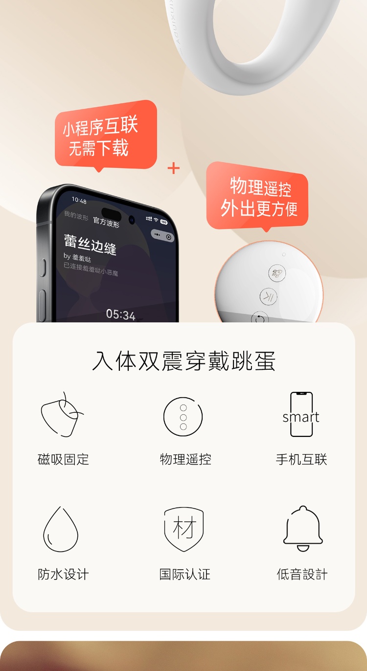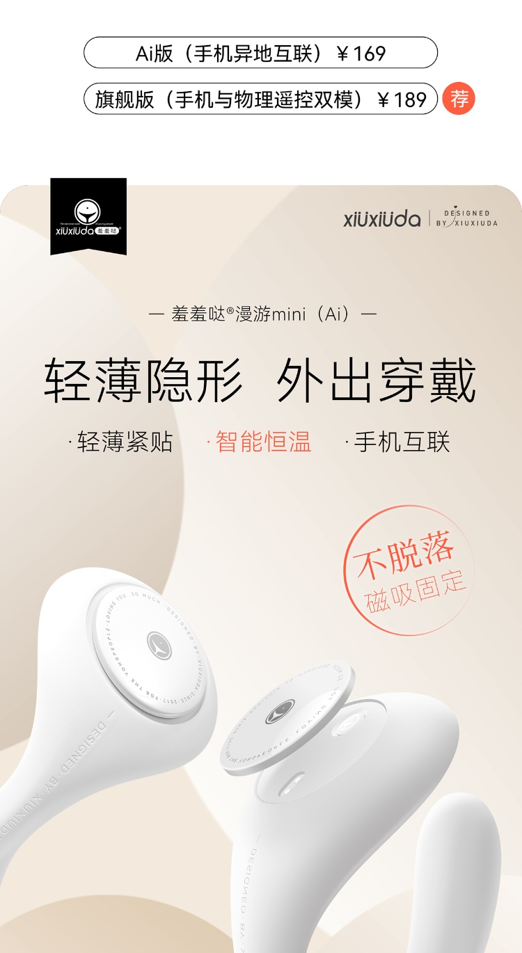 mini 款:不入体设计,前端凸起精准刺激,适合怕痛 / 初体验用户,外出穿戴无异物感。3 档强度 + 7 档变频,震感细腻,低阈值人群友好,加热可单独当 “暖宝” 使用。
