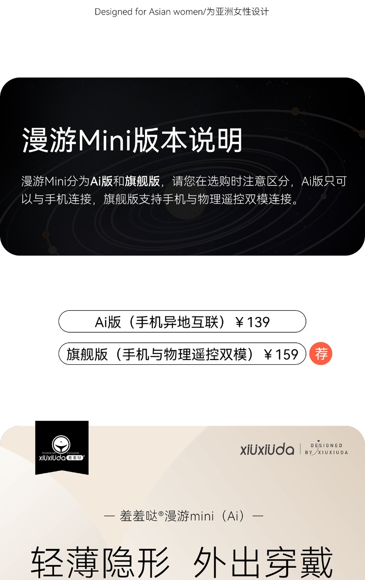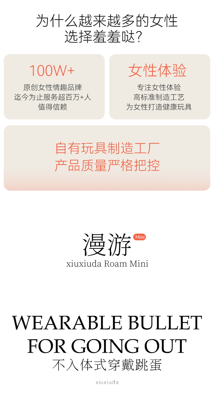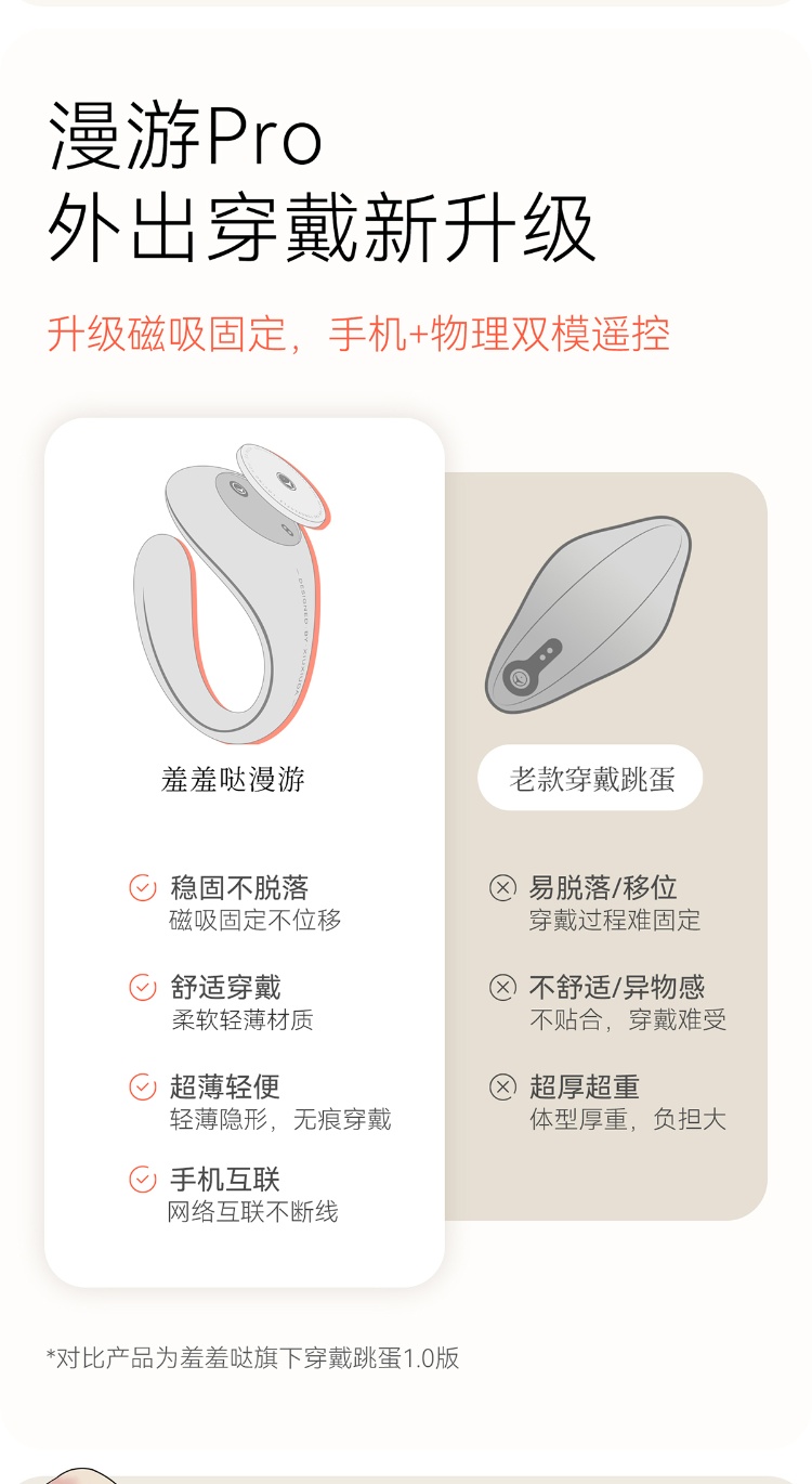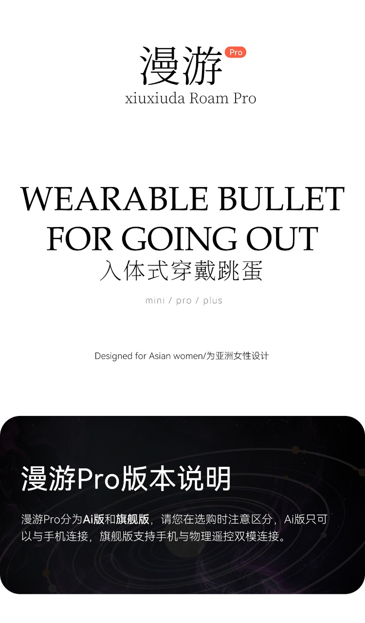 羞羞哒漫游旗舰版 mini/PRO 的核心卖点围绕 “AI 远程双控 + 穿戴隐形 + 恒温加热 + 双形态适配 + 私密安全”,mini 主打新手 / 体外穿戴,PRO 适配进阶 / 内外双刺激,旗舰版双控更便捷。