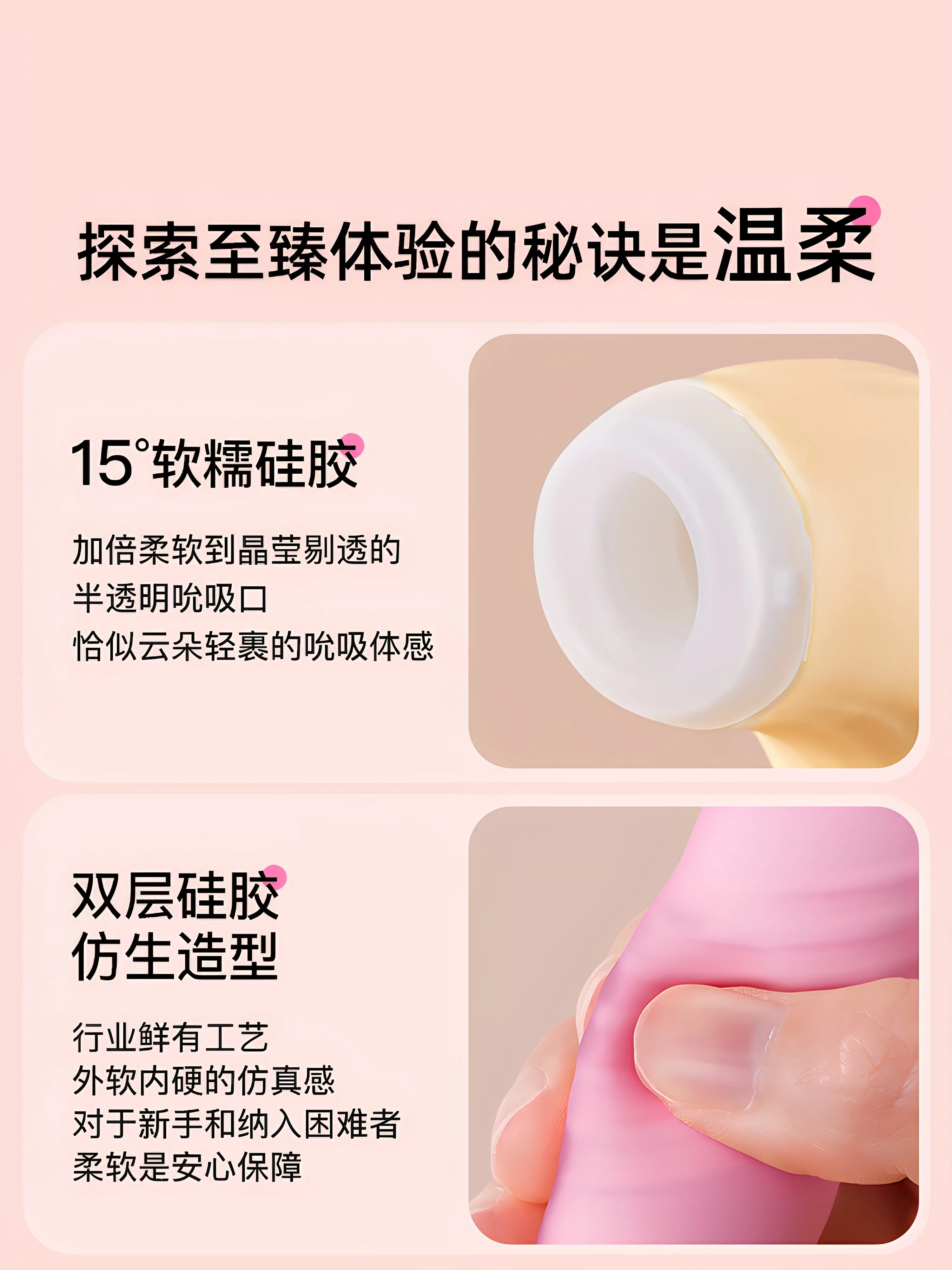 医用级硅胶 + ABS 材质,亲肤无异味,触感柔软细腻,敏感肌友好,使用更安心。